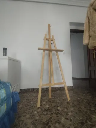 Caballete de madera, ideal para artistas y estudiantes. Prácticamente sin uso. Recogida en punto a acordar. - Material: Madera. - Altura ajustable.