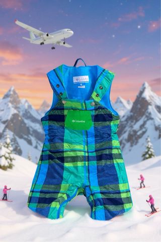 Mono de nieve para niños de la marca Columbia. - Diseño a cuadros en tonos azules y verdes. - Bolsillo frontal con logo de Columbia. - Tirantes ajustables con botones. - Forro interior azul.