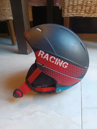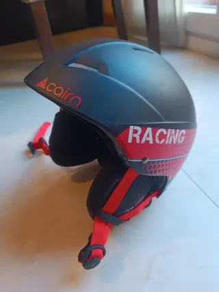 Casco de esquí infantil de la marca Cairn, modelo Racing. Buena calidad y muy calentito. Buena sujeción de las orejas. Diseñado para ofrecer protección y comodidad en la montaña. - Color negro y rojo. - Diseño con ventilación. - Correa ajustable para un ajuste seguro.
