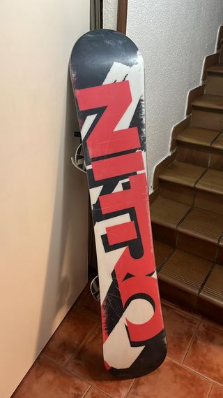 Tabla de snowboard con un diseño llamativo en rojo y negro. Mide 147 cm de largo, 25,5 cm en el centro y 30 cm en los laterales. Los cantos están reparados y recién encerada. Perfecta 👌 - Marca: Nitro - Diseño gráfico - Forma: Twin Tip