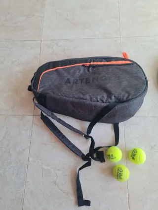 Bolsa de pádel de la marca ARTENGO, ideal para transportar tu equipación. - Color gris oscuro con detalles en naranja. - Incluye tres pelotas de tenis HEAD PRO.