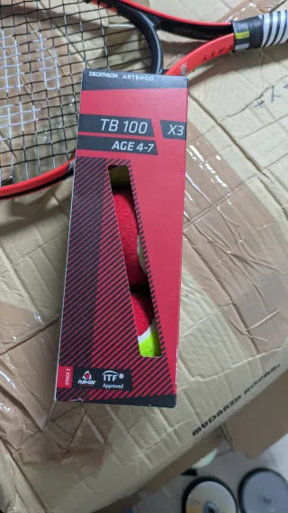 Pack de 3 pelotas de tenis Artengo TB 100 para niños. Pelotas blandas, más lentas y fáciles para empezar. Están nuevas. - Diseñadas para la etapa 3 de aprendizaje. - Ideales para edades de 4 a 7 años. - Aprobadas por la ITF.