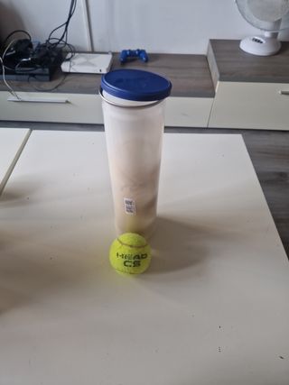 Tarro de pelotas de tenis. - Incluye 4 pelotas de tenis.