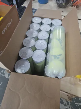 Se vende caja con 24 botes de pelotas de frontenis de la marca HEAD. Cada bote contiene 3 pelotas. - Marca: HEAD - Modelo: Frontenis - Cantidad: 24 botes - Pelotas por bote: 3