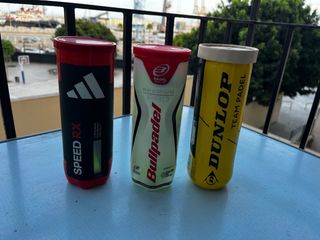 3 botes pelotas padel Adidas, Bullpadel, Dunlop
