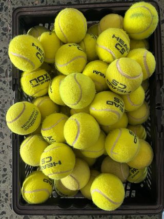 Se venden 17 pelotas de tenis y pádel usadas. Están en buen estado y listas para usar. - Incluye 17 pelotas en total. - Ideales para practicar tenis o pádel. - Son de color amarillo.