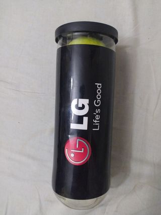 Dispensador de pelotas de tenis en perfecto estado. Ideal para llevar tus pelotas a la pista de tenis. - Fabricado en plástico resistente y transparente. - Diseño compacto y fácil de transportar. - Incluye un inflador de mano.