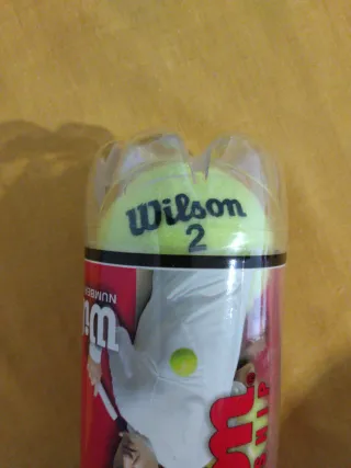 Bote de pelotas de tenis Wilson. - Incluye 3 pelotas. - Modelo Championship. - Wilson 2.
