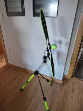 Entrenador de tenis Topspinpro para practicar el golpe liftado. Permite mejorar la técnica y la consistencia. - Estructura con malla. - Base de trípode estable. - Incluye pelota de tenis. Bolsa de transporte y caja.