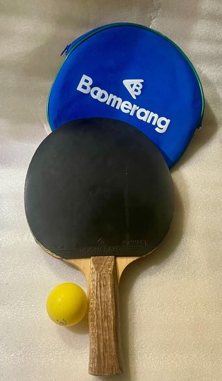 Set de pádel de tenis de mesa marca Boomerang. - Pala de tenis de mesa. - Estuche para guardar el equipo. - Pelota de tenis de mesa.