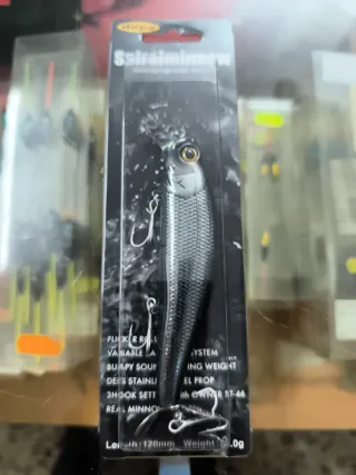 Tipo y Acción: Diseñado para pescar en superficie y capas medias, emite sonido y crea salpicaduras con su hélice trasera. Especificaciones: Longitud de 120 mm y un peso de 25.0 g. Características: Equipado con 3 anzuelos triples y un sistema de hélice de acero inoxidable.