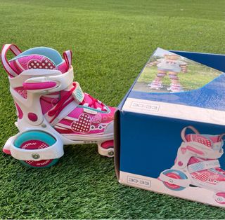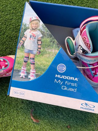 Patines cuádruples Hudora para iniciación. - Diseño en color rosa con detalles. - Talla 30-33.
