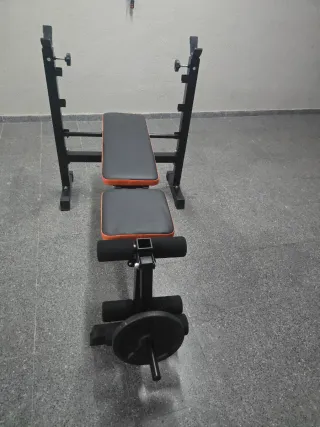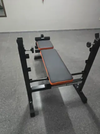 BANCO DE PESAS Y MUSCULACION PARA HACER PECHO INFERIOR Y SUPERIOR Y PREES BANCA Y HOMBROS Y PIERNAS CUÁDRICEPS Y FEMORAL BANCO MUY RIGIDO Y ESTABLLE LLEVA 1 BARRA DE 1,55 CM 2 DISCOS DE 10 KIOS 2 DISCOS DE 5 KILOS 2 DISCOS DE 2 KILOS BANCO DE PESAS Y MUSCULACION IDEAL PARA ENTRENAR EN CASA OCUPA MUY POCO ESPACIO ES PLEGABLE Y