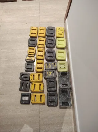 Lote de discos para gimnasio con un peso total de 101,5 kg (sale a 1'5€ el kilo), la cantidad y pesos son las siguientes: - 10kg / 3 discos (vendidos) - 6kg / 2 discos - 5kg / 16 discos (10 vendidos) - 4kg / 4 discos (2 vendidos) - 3kg / 4 discos (vendidos) - 2'5kg / 8 discos (4 vendidos) - 2kg / 28 discos (10 vendidos) - 1'5kg / 2 discos - 1'25kg / 2 discos - 1kg / 10 discos (vendidos) Se vende todo el lote junto o también por separado. Tengo más material de gimnasio preguntar por privado. #pesas#discos#gimnasio#maquinamultifunción#barraZ#mancuernas#barra#cierres#musculacion#ejercicios#domyos#salter#newfit#tentable#