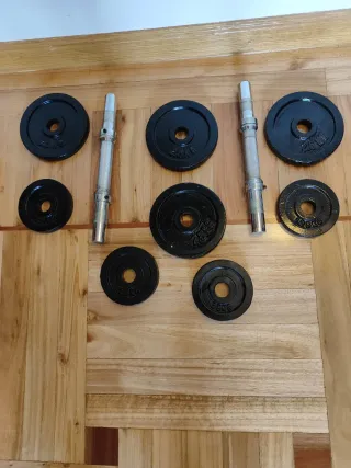FORMADO POR: -BARRA 150CM MAZIZA DE 10KG CON 2 CIERRES -2 DISCOS SALTER DE 10KG(foto2) -2 DISCOS SALTER DE 5KG(Foto3) -2 DISCOS SALTER DE 3KG (Foto4) TODO DE 30MM. CON BARRA DE 1.8M O 2M +10€ PoSIBILIDAD EE AÑADIR 2 DISCOS DE 15KG POR 79€. ENTREGA EN MADRID (EN MANO A DOMICILIO) MAS EN MI PERFIL domyos decathlon culturismo pesas halterofilia disco barra mancuerna mancuernas fitness 30mm 180cm 150cm 120cm 5kg 10kg 15kg 20kg banco press barras gym discos de 30mm de caucho barra z kilo discos de 1 kilo discos de 2 kilos discos de 5 kilos barra 30mm barra