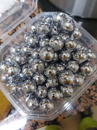 Plomo bola pasante. Con pesos de 10, 15, 20 y 25 gramos. Precio por kilo 14€. Mas en mi perfil. Si no me queda de algun peso, se hacen por encargo, no tardo mas de 1 dia en tenerlos.