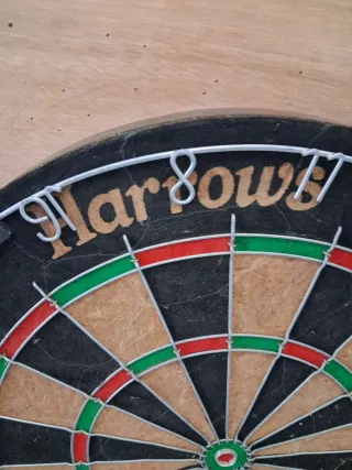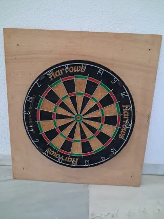 Diana Harrows Oficial para competición. Con materiales de alta calidad que no rebotan los dardos. Secciones numeradas del 1 al 20 en alambre redonda. Para dardos de punta de acero. Mide 46cm, grosor 4'5. Sobre tablero de 67x61, para colgarla en la pared. Pesa 7 kilos. Uso domestico, Competicion bares, clubs, etc ...No incluye dardos. Oferta 49€. Recoger en Marbella. Hago envio.