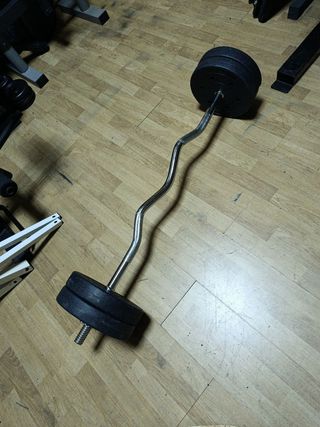 Se vende barra z con cierres y 4 discos de 5kg. Diámetro: 28mm Palabras clave: gimnasio, gym, domyos, decathlon, pesa, pesa rusa, kettlebel, mancuerna, disco, peso, halterofilia, barra, cierre, pinza, barra, dominadas, gervasport, tentable, 25mm, 28mm, 30mm, barra romana, barra h, barra z, zeta, banco, press, banca, bodypump, 1kg, 2kg, 5kg, 10kg, 20kg, olímpica.