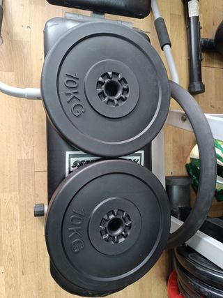 Se venden discos de musculación de hierro y plastificados. Discos Domyos, 28mm: - Disco 20kg: 40€ - Disco 10kg: 20€ - Discos 5kg: 10€ - Discos 2kg: 4€ - Discos 1kg: 2€ Hay de otras marcas, otros diámetros, etc. Preguntad dudas, y lo que necesites. Tengo barras de mancuernas, cierres, barras largas, barras z, bancos... Palabras clave: gimnasio, gym, domyos, decathlon, pesa, pesa rusa, kettlebel, mancuerna, disco, peso, halterofilia, barra, cierre, pinza, barra, dominadas, gervasport, tentable, 25mm, 28mm, 30mm, barra romana, barra h, barra z, zeta, banco, press, banca, bodypump, 1kg, 2kg, 5kg, 10kg, 20kg, olímpica.