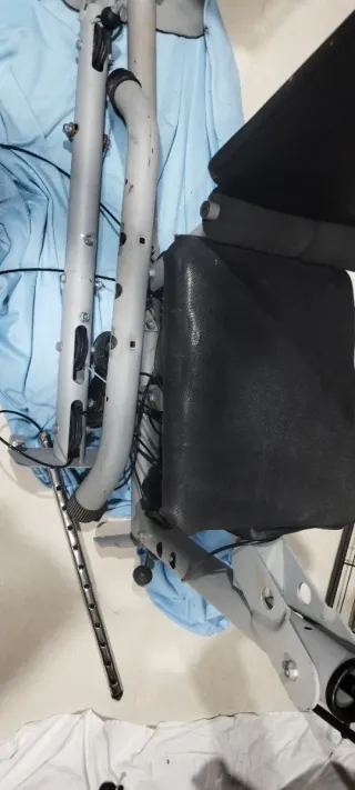 Banco de pesas y bicicleta estática para entrenar en casa. Ideal para mantenerte activo. - Asiento con acolchado. - Pedales para bicicleta. - Estructura metálica.El asiento de la bicicleta solo está un poco roto pero con una funda queda bien.Las dos cosas por €70
