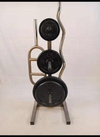 Banco de pesas, barra y discos
