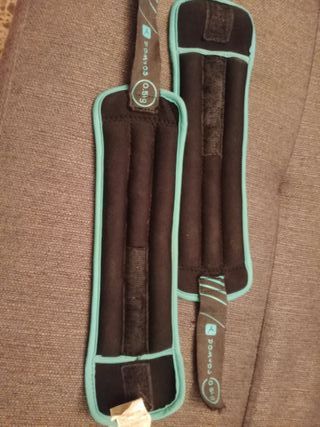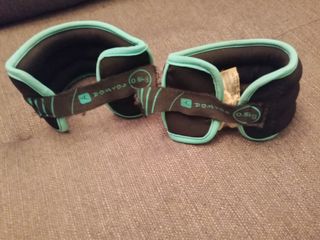 Par de tobilleras de la marca DOMYOS. - Color negro y turquesa. - Cada tobillera pesa 0.5 kg. - Cierre ajustable con velcro.