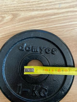 Se venden tres discos para mancuernas de 1 kg cada uno. - Marca: DOMYOS - Peso: 1 kg (2.2 LBS) cada disco