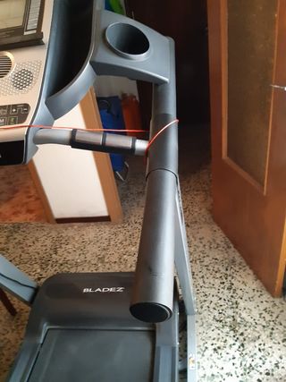 Cinta de correr BLADEZ TR202I. Preparada para un uso intensivo de entre 7 y 20 horas semanales, para usuarios con un peso máximo de 130 Kg. Motor de 3 CV con Green Power Tech para uso más frecuente de la energía, reduce el consumo eléctrico. Función ECO MODE, velocidad entre 1 y 18 km/h, inclinación 12%, amortiguación mediante 6 elastómeros, para reducir el impacto en las articulaciones y espalda. Superficie de carrera 140 X 51 cm. Monitor motivacional. 3 perfiles personalizables, 12 programas. Test de grasa corporal. Sensores de pulso, sistema de plegado, portabidones integrados, cinta de seguridad. En perfecto estado.