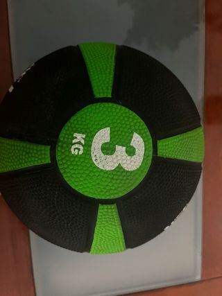 Balón medicinal de 3 kg, ideal para tus rutinas de ejercicio. Es de color verde y negro, con una textura ligeramente rugosa. - Perfecto para entrenamiento funcional. - Peso: 3 kilogramos. - Diseño en dos colores.
