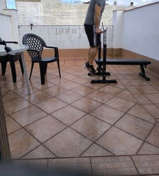 Equipo de gimnasio completo para entrenar en casa. - Banco de pesas ajustable. - Incluye barra y algunos discos - Estructura robusta. -Agarres pecho, bíceps, tríceps... -Banco abdominales