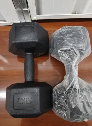Par de mancuernas de 10 kg cada una. Ideales para entrenamientos de fuerza. - Diseño hexagonal para mayor estabilidad. - Empuñadura texturizada para un agarre seguro. - Peso: 10 kg por mancuerna. 🔴Producto nuevo a estrenar 🔴