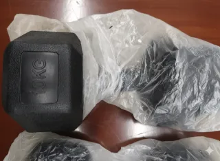 Se venden dos mancuernas hexagonales de 5kg cada una. Ideales para entrenamientos en casa. - Peso: 5kg por mancuerna. - Diseño hexagonal para evitar que rueden. - Empuñadura antideslizante.