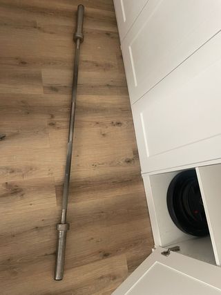 Barra olímpica de gimnasio, ideal para entrenamientos,press de banca.. - Incluye dos pinzas de seguridad para discos. Para discos de peso de 50 mm. Con puntos de agarre estriados antideslizantes. Soporta cargas de hasta 250 kg de peso. Con cojinete de bolas. Longitud total: 1520 mm. Longitud del mango: 960 mm. Diámetro del mango: 28 mm. Peso: 11,4 kg Posibilidad de desplazarme a varios puntos de la isla para entregarla.