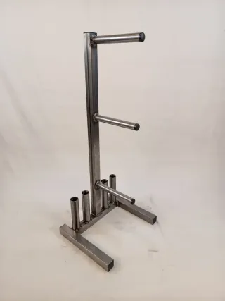 Soporte metálico para organizar pesas. - Estructura resistente de color negro. - Diseño con ranuras para colocar las pesas de forma ordenada. - Incluye dos soportes cilíndricos adicionales colocación de barras. Diferentes unidades de un mismo articulo. soporte realizado en acero, para discos olímpicos de 50 mm. tambien disponible para discos de 28mm. Ademas de ofrecer la posibilidad de cambiar medidas y diseño. ¡¡Se vende solo el soporte!! ¡SE REALIZAN ENVIOS! varias unidades. peso de arvore abre pes peses pesi, dichi #aerobic, arbol, boxeo, calistenia, casa, domios, culturismo, crosffit, gym, karate, deporte, decathlon, esc