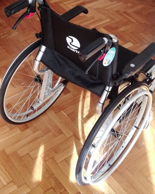 NUEVA SIN USO, con su etiqueta. Fabricada en España, no es asiática. CON EXTRA: lleva instalados frenos adicionales en las manetas (de origen, no se ha manipulado posteriormente). Ruedas anti pinchazo de 600 autoportantes. Chasis reducido de aluminio, plegable, reposapiés regulables desmontables, asiento 45cm de ancho. Sin usar. Sólo pesa 13kg. es muy manejable. Soporta un peso máximo de 140kg. Precio pago en mano, se puede enviar siempre y cuando se abone el total previamente por transferencia o Bizum.