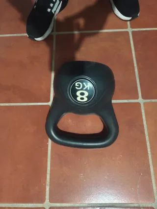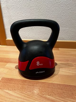 Pesa rusa de hierro fundido con un peso de 8 kg. Ideal para entrenamientos de fuerza y acondicionamiento físico. La vendo por falta de uso. - Material: Hierro fundido. - Peso: 8 kg. - Color: Negro.