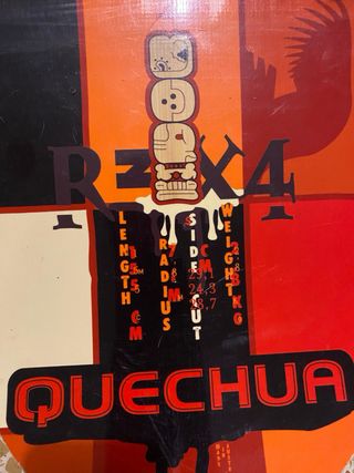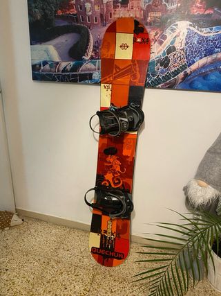 Tabla Snowboard Quechua RZX4 de 1,55m (155cm) en buen estado. Con marcas de uso pero sin ningun daño. Peso 2,8Kg. lleva fijaciones Quechua con uso, pero funcionan correctamente. esteticamente tienen la piel algo saltada, pero no influye a su funcionamiento. Se vende porque tengo otra tabla/fijaciones.
