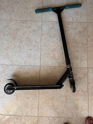Patín de acero para saltos de niño con una altura de 82 cm y una plataforma de 60 cm de largo. Ruedas cambiadas de hace poco pesa unos 3,4 kg Vendo a parte las proteciones