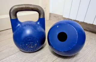Vendo 2 Kettlebells (Pesas Rusas) de competición de 12kg cada una. Son de la marca Kettlebell Kings, el estándar de oro en pesas rusas (superiores a Rogue o marcas genéricas). Detalles: Marca: Kettlebell Kings. Modelo: Competición (Acero, color Azul oficial). Estado funcional: 10/10. Estructuralmente están perfectas, base plana y equilibrio exacto. Estado estético: Tienen marcas de uso normales. La pintura tiene algunos saltos por el choque entre ellas al hacer ejercicios dobles (ver fotos) y las asas tienen la pátina típica del acero desnudo, lo cual garantiza un agarre excelente. Compradas hace un año y medio.