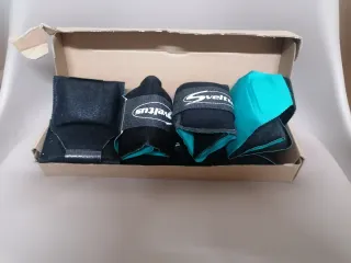 Set de 5 pesas tobilleras Sveltus para entrenamiento. - Color negro con detalles en turquesa. - Cierre ajustable con velcro. - Incluye dos unidades. 0,5kg cada una. Vendo más cosas de masaje y recuperación en mi perfil
