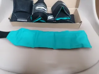 Tobilleras lastradas para entrenamiento. - Peso: 1,5 kg cada una. - Cierre de velcro ajustable. - Material: Tela resistente. Precio a negociar.