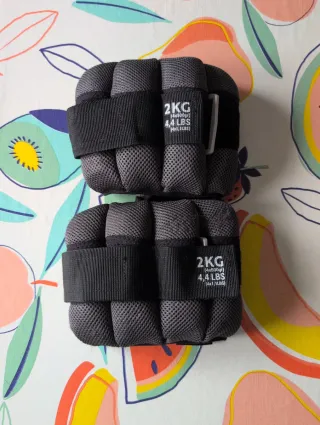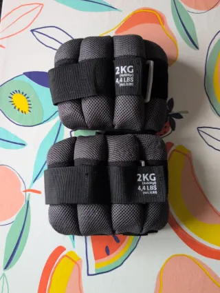 Tobilleras con peso 2kg cada una y cierre de velcro.