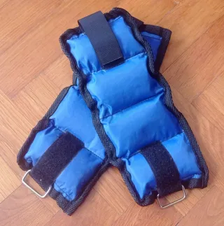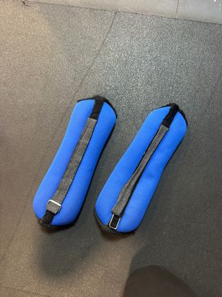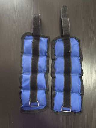 Par de tobilleras de peso para entrenamiento. - Color azul. - Cierre con hebilla y velcro. - Cada tobillera pesa 2 kg, para un total de 4Kg Escucho Propuestas Bienvenidos Intercambios