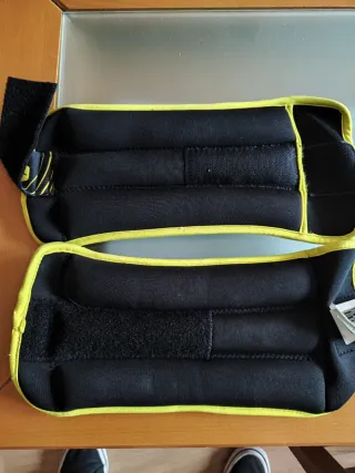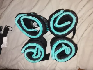 Set de 4 pares detobilleras para entrenamiento. - Tres pares de tobilleras de 1 kg cada una. - Un par de tobilleras de 0.5 kg cada una. - Cierre ajustable con velcro. - Relleno extraíble para añadir o quitar peso. Vendo la pareja por 6 euros no negociables. Saludos