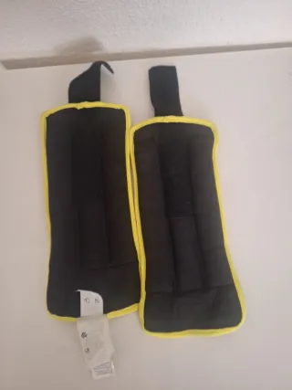 Par de pesas para tobillos o muñecas de la marca DOMYOS. - Cada pesa tiene un peso de 1kg. - Cierre de velcro ajustable. - Color negro con detalles en amarillo. - Total 2 kg - Cómodas y prácticas de usar - Muy bien cuidadas como se puede apreciar en la imagen - Se venden las 2 juntas