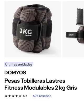 Pack de dos pesas tobilleras fitness, marca Domyos. 2kg/unidad. Nuevas sin estrenar