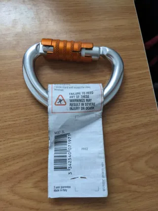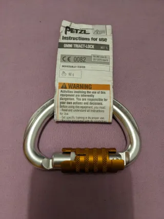 Mosquetón Petzl Omni Triact-Lock con cierre automático. Tengo ocho en total, si se compran todos los dejo en 140. - Modelo: M37 TL - Peso: 92 g - Certificaciones: EN 362 class B, EN 12275 type B - Probado individualmente.
