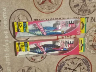 Jigs de pesca plateados, diseñados para la pesca de lubina. Cada jig tiene un peso diferente para adaptarse a distintas condiciones de pesca. - Peso: 25gr, 40gr, 60gr, 80gr. - Diseño con escamas y ojo de pez. - Incorporan anzuelos y pelos de colores llamativos (amarillo, azul, rosa, negro). Precios: -25 grs 3€ - 40 grs 3,5€ - 60 grs 4€ - 80 grs 5€ Con anzuelo y pelos incremento de 2€ por unidad