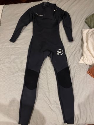 Neopreno de la marca Deeply, con un grosor de 3/2mm. - Color negro. - Forro interior de pelo en pecho y espalda - Talla S (yo mido 180 y peso 58kg) - gama competition - Zipperless (sin cremalleras) - Paneles de refuerzo en las rodillas.