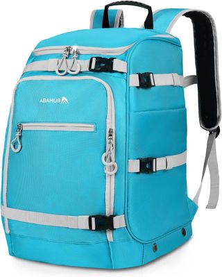 Mochila para botas de esquí/snowboard 50L (33×33×49 cm) tipo bolsa botas + casco: capacidad generosa para llevar botas, casco, gafas, ropa y accesorios en un solo viaje. Fabricada en nylon 1680D con recubrimiento PU impermeable y protección interior con acolchado 9 mm, cuidando el equipo frente a golpes, rozaduras y humedad. Diseño inteligente con compartimentos independientes y múltiples bolsillos/separadores para mantener todo ordenado y acceder rápido (botas/casco/gafas/guantes, etc.). Transporte cómodo: tirantes ergonómicos acolchados + cinta pectoral ajustable para repartir el peso; práctica para caminar o colocar en portaesquí